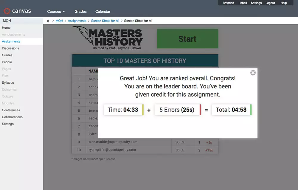Dr. Clayton Brown, a history professor at Utah State University, approached Atomic Jolt to create a game-like flash card application to enhance his online class. He was already using the Canvas LMS to teach his online classes; but he believed that students would relate to an online game better and be more willing to learn the historical facts taught in his class.