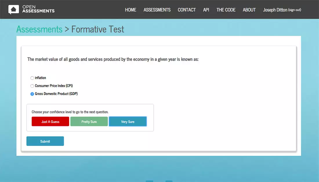Compared to the vast investment in the open licensed content, relatively little has been invested in the development of shareable assessments aligned with that content. Part of the reason for this is because of the lack of suitable technology. Typically, most online assessments are delivered inside of an LMS or publisher platform that houses protected content. Traditional models emphasize assessment for summative evaluation at the end of a set of learning experiences. In contrast, newer models emphasize using assessment for formative evaluation as part of supporting learning. This is especially important in online learning as research demonstrates that students are more likely to engage and maintain engagement when they are asked to interact and receive feedback throughout their learning experiences.