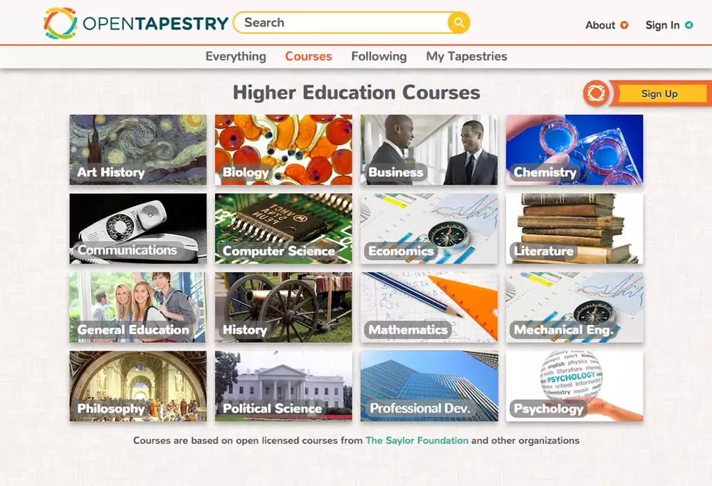 Open Tapestry is a cutting-edge online course authoring tool that helps faculty find, adopt, customize, track, and curate web resources, including videos, images, web pages, and documents. Open Tapestry helps universities integrate web resources into course materials they deliver via learning management systems (LMS) such as Instructure Canvas or Blackboard.